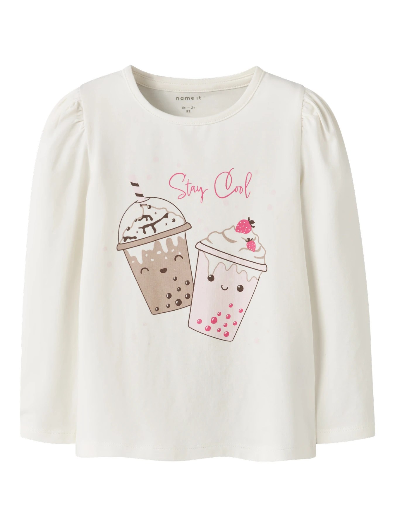 Super sød bluse fra Name it. Den er med lange ærmer, er rund i halsen og er lavet i en blød og lækker kvalitet. Blusen er med et sødt print på maven.