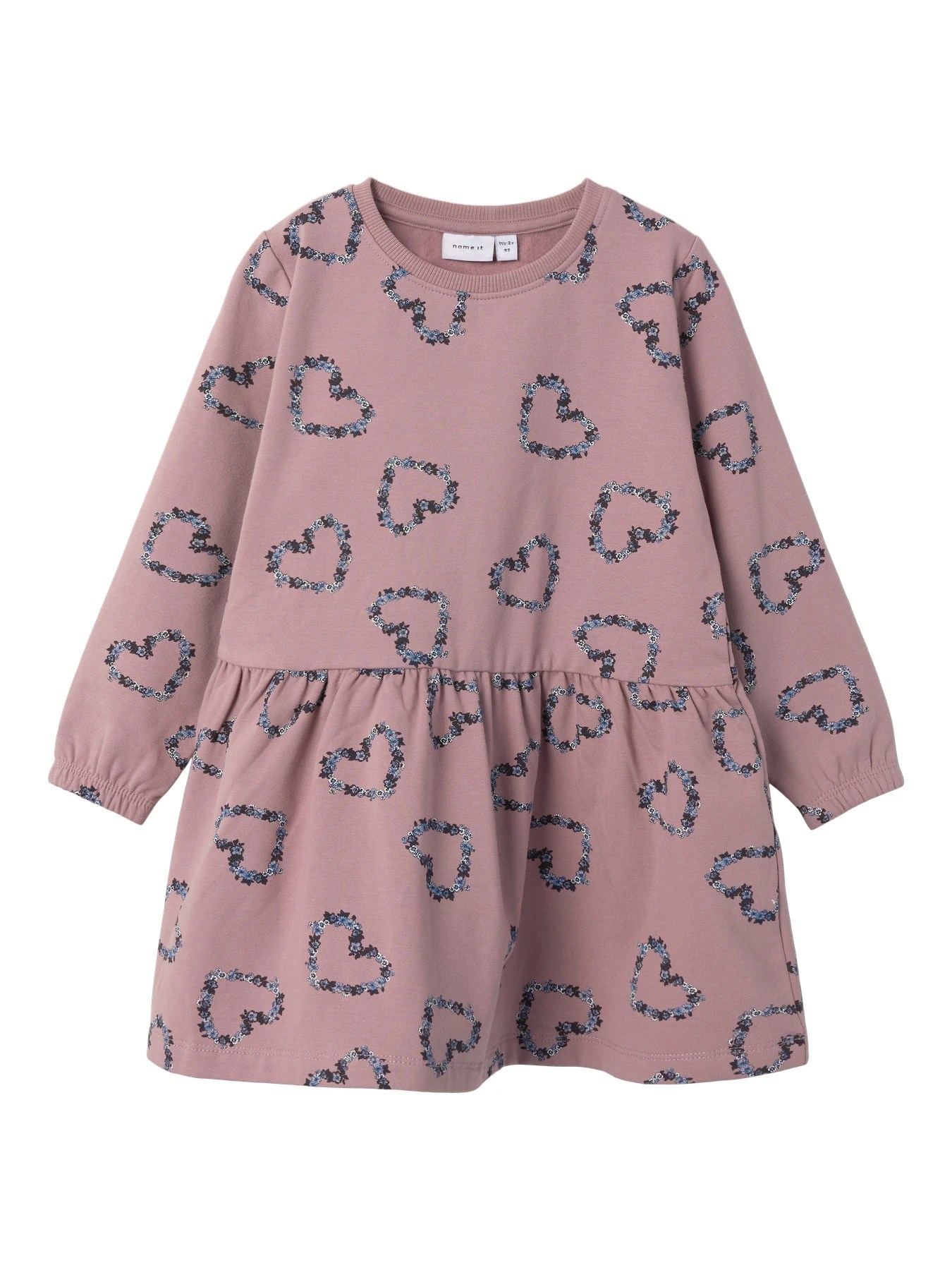 Den sødeste sweat kjole fra name it. Kjolen er i en farve med et sødt sløjfe blomster print.